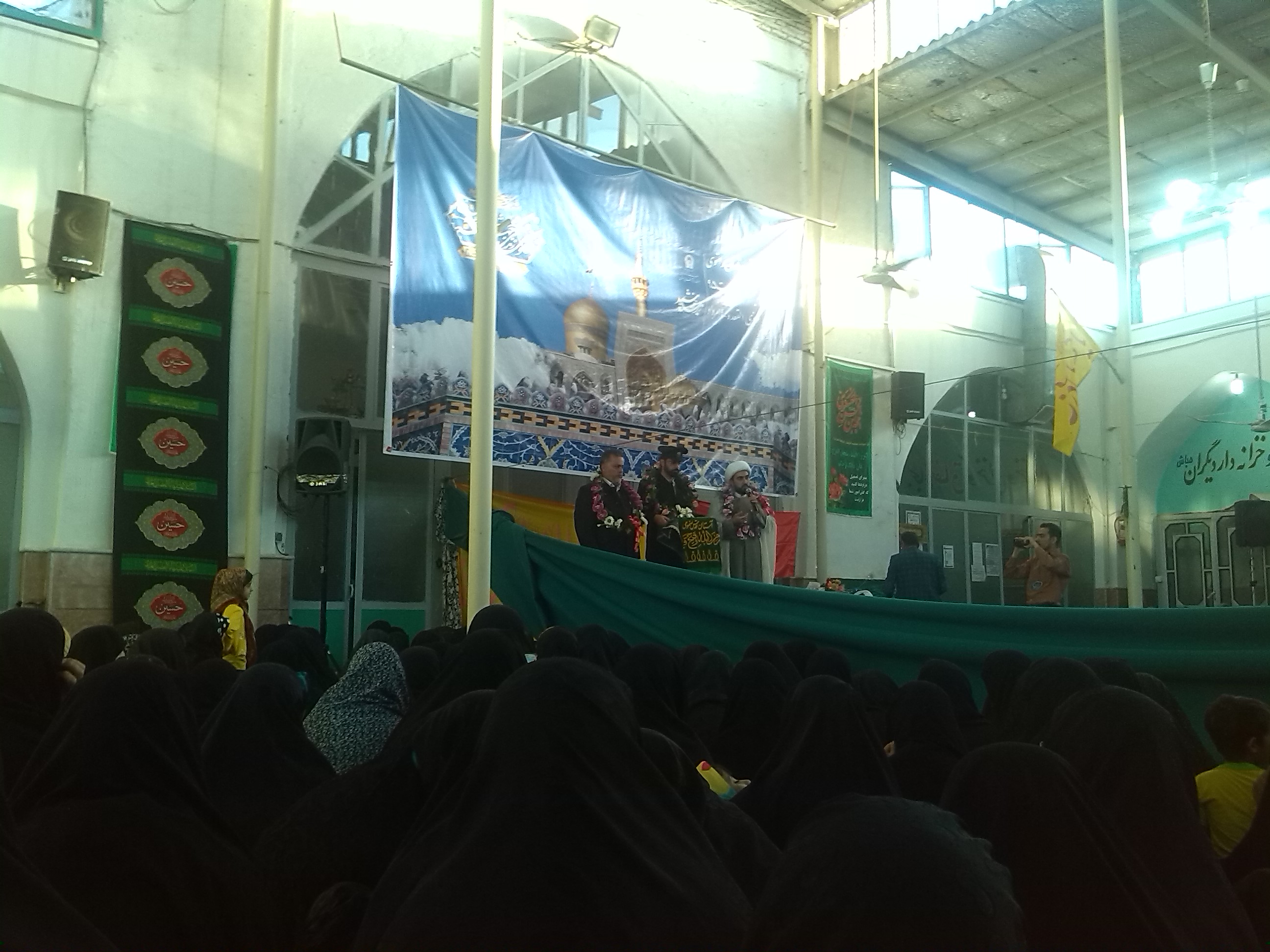 خادمین حرم امام رضا (ع) به همراه پرچم امام رضا (ع) به بیارجمند آمدند وهمه مردم شهر بخصوص کودکان